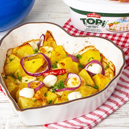 BAKED POTATO & MEETBALLS WITH CHEESE