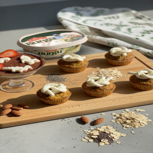 Yumurtayı ve sütü çırpıp zeytinyağı ekleyelim. Tercih ediyorsanız glütensiz veya istediğiniz bir unu ve kabartma tozunu da ekleyip karıştıralım. Rendelenmiş sebzeleri, yeşillikleri ve Muratbey Sürmeli’yi ekleyelim. Bu karışımı muffin kalıplarına paylaştırıp, önceden ısıtılmış 180°C fırında 20–25 dk pişirelim. Piştikten sonra muffinlerin üzerini Muratbey Burgu’yu kıvırıp düğüm yaparak süsleyelim.