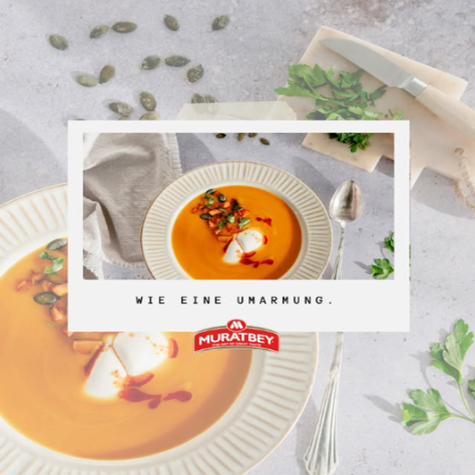 In der Zwischenzeit Paprika-Paste und Chili-Flocken mit 4 EL Olivenöl anbraten. Etwas stehen lassen und das Öl abgießen. Das Öl wird später zum Beträufeln der Suppe verwendet. Die Suppe mit einen Pürierst fein pürieren. Die Suppe auf einem tiefen Teller servieren. Als Topping kommen 1-2 Löffel Kaymakli Honig Käse auf die Suppe. Dazu einige Würfel angebratenen Kürbis, Kürbiskerne und das Chili-Öl.