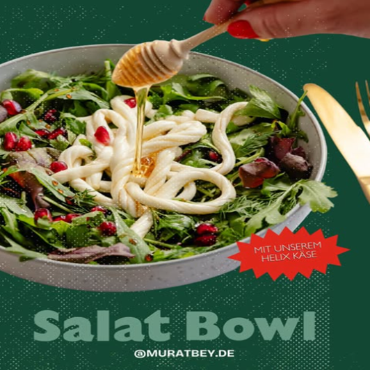 schwenken. Den warmen Käse auf dem Salat verteilen. Dann mit Granatapfel-Kernen garnieren.
