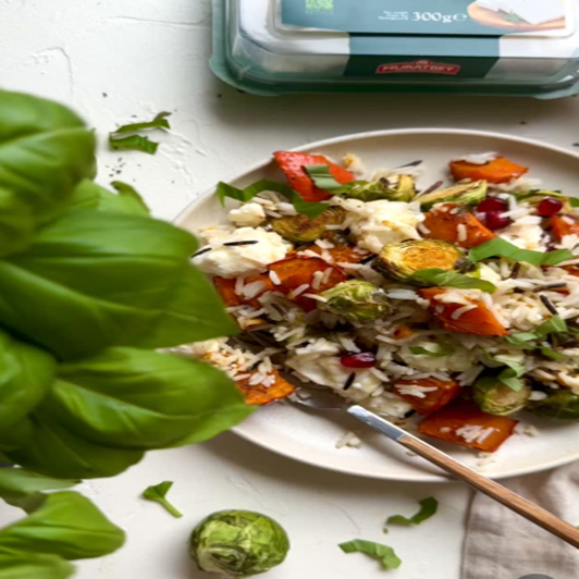 Rosenkohl mit etwas Olivenöl und Currypulver marinieren und für 10-15 Minuten bei 180 Grad im Airfryer backen (Kürbis sollte weich sein). Reis mit dem Ofengemüse, gebröckeltem Feta und Granatapfelkernen vermengen und mit frischem Basilikum und Salz und Pfeffer servieren. Guten Appetit